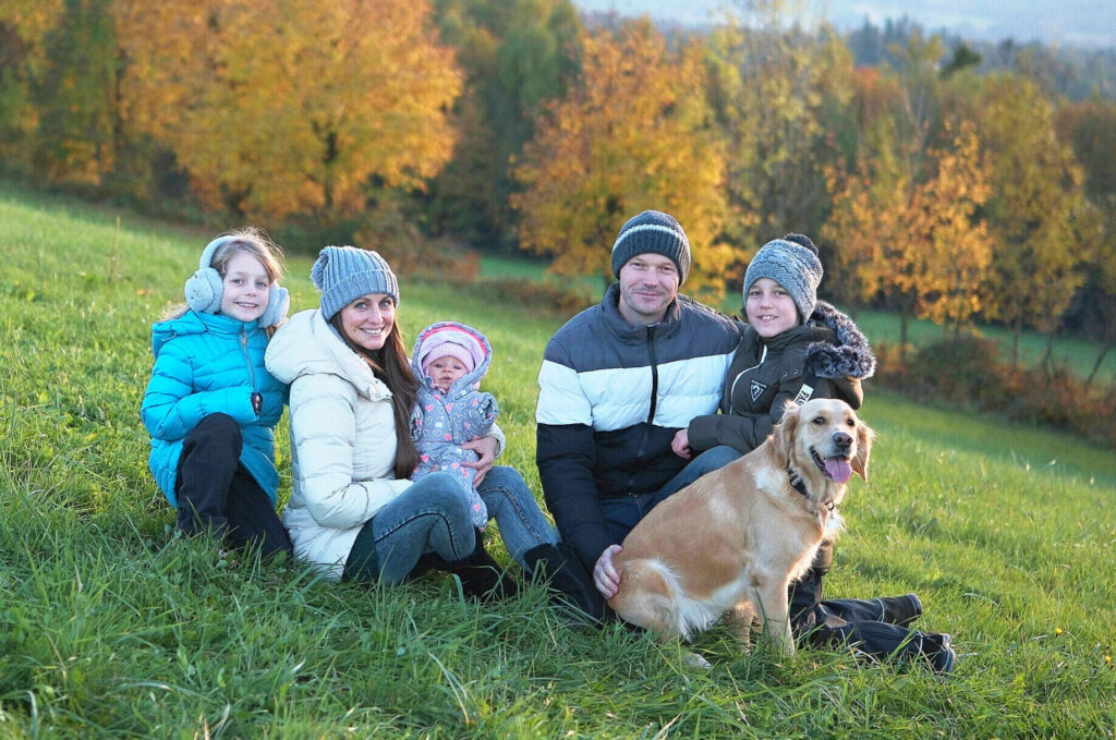 Tatínek Jirka, maminka Zuzka a dvě veselá děťátka, Dominiček a Nelinka. Jejich dny jsou prosluněné láskou a radostí. A já, ona maminka, jsem ze srdce vděčná, že mohu být toho sluncem zalitého života součástí.